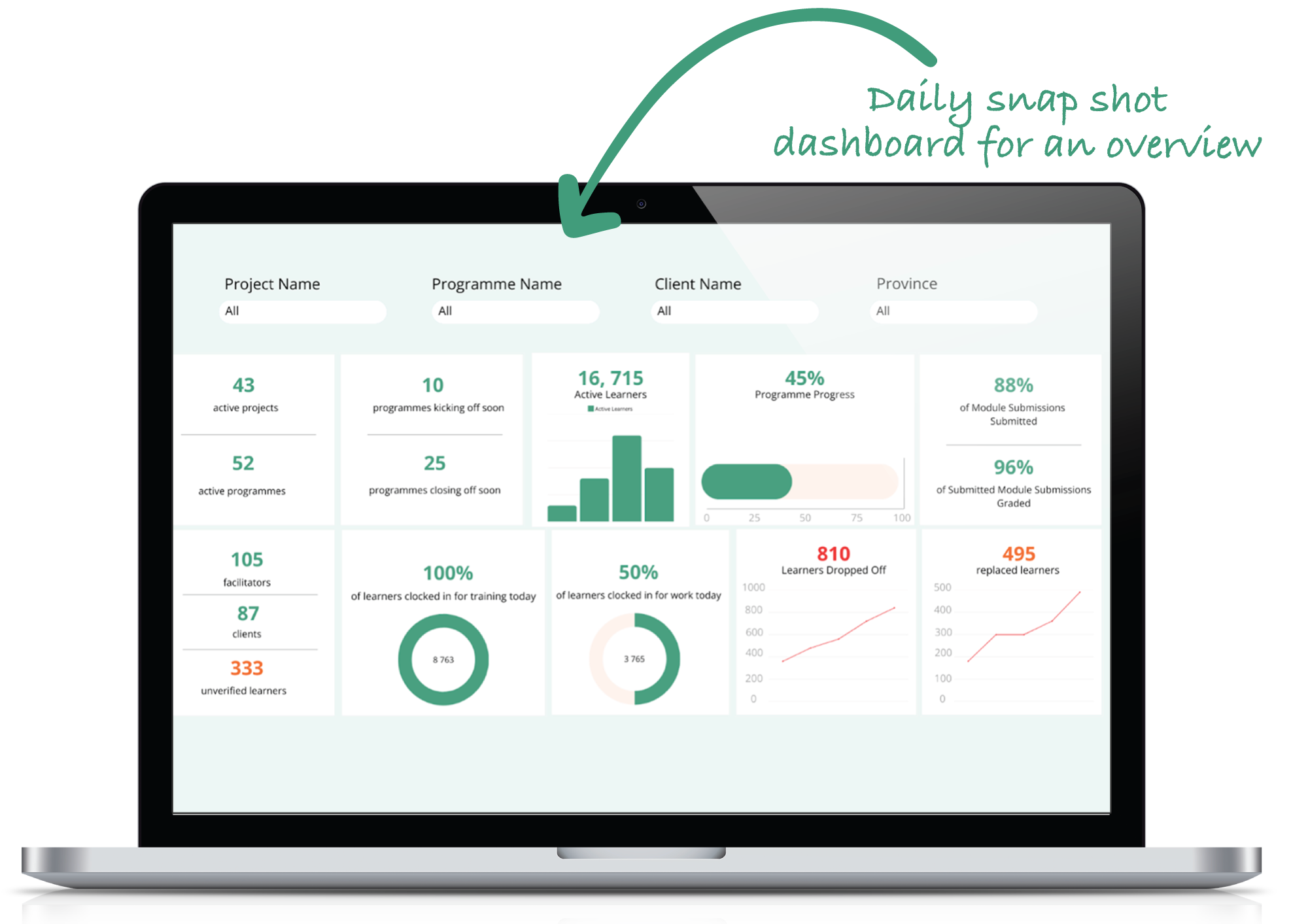 Post enrolment, Growth hub tracks learners from beginning of programmes to exit and absorption.